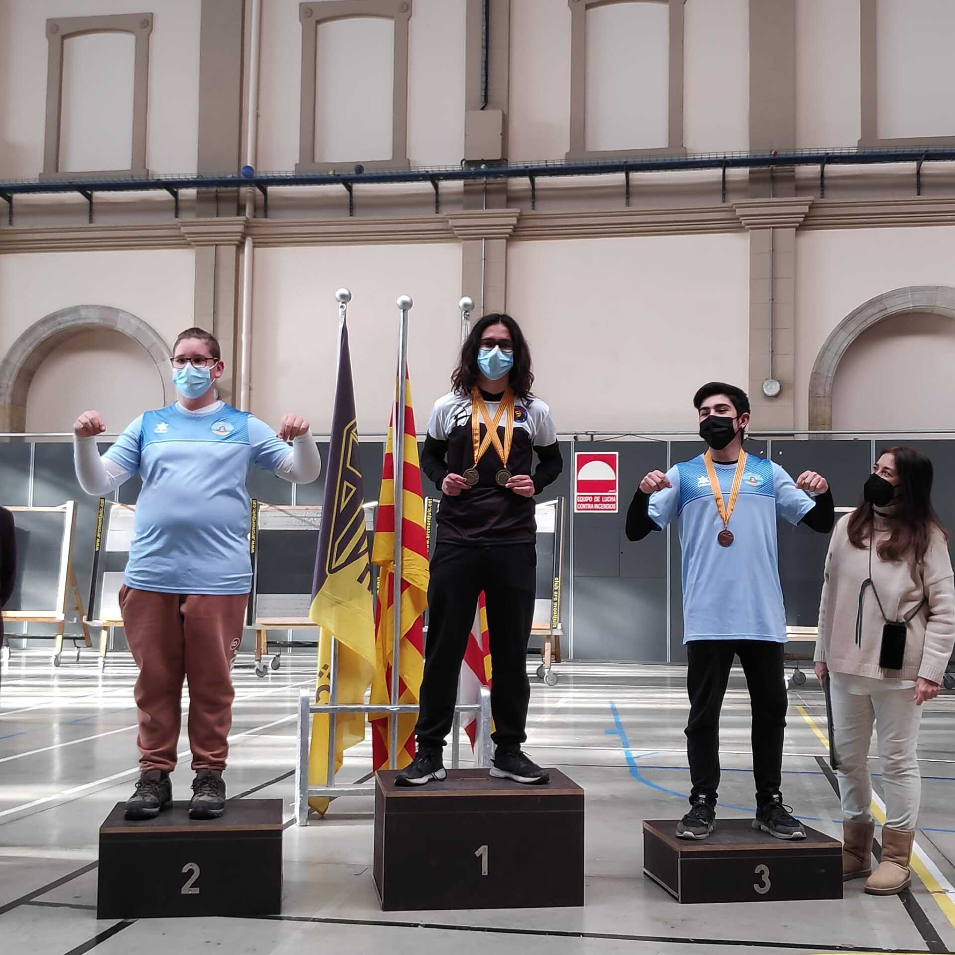 Primer puesto de nuestros equipos en el Campionat de Catalunya de Clubs en sala, en arco tradicional, desnudo y longbow, celebrado en Montjuic el domingo 22 de enero de 2023.